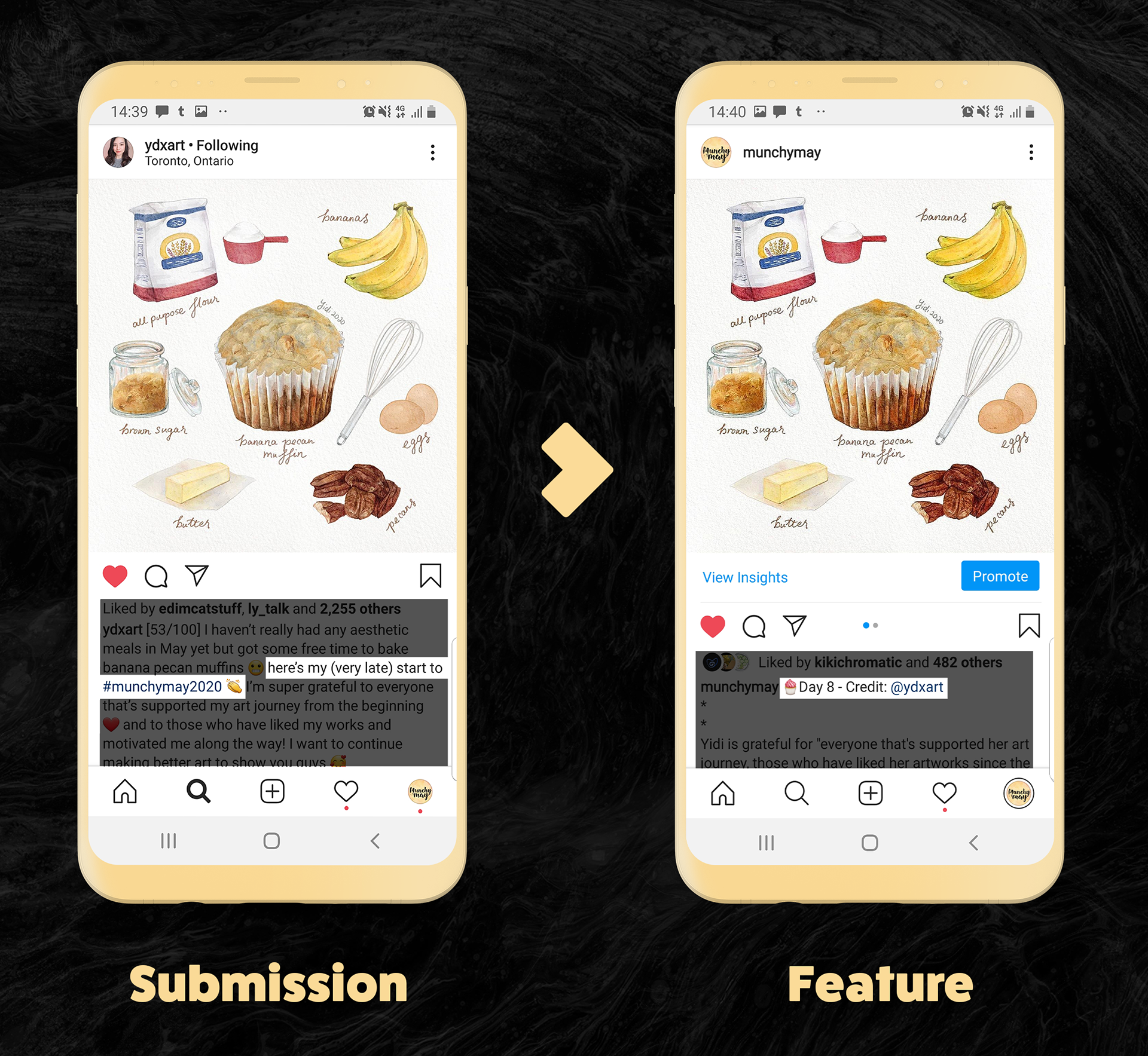 Ydxart submitted this post to the MunchyMay Instagram account for the May annual event. I selected this submission as an appropriate feature due to it meeting my criteria, I later featured Ydxart's submission onto the MunchyMay brand account. The post had a 27% engagement which I was thrilled with.