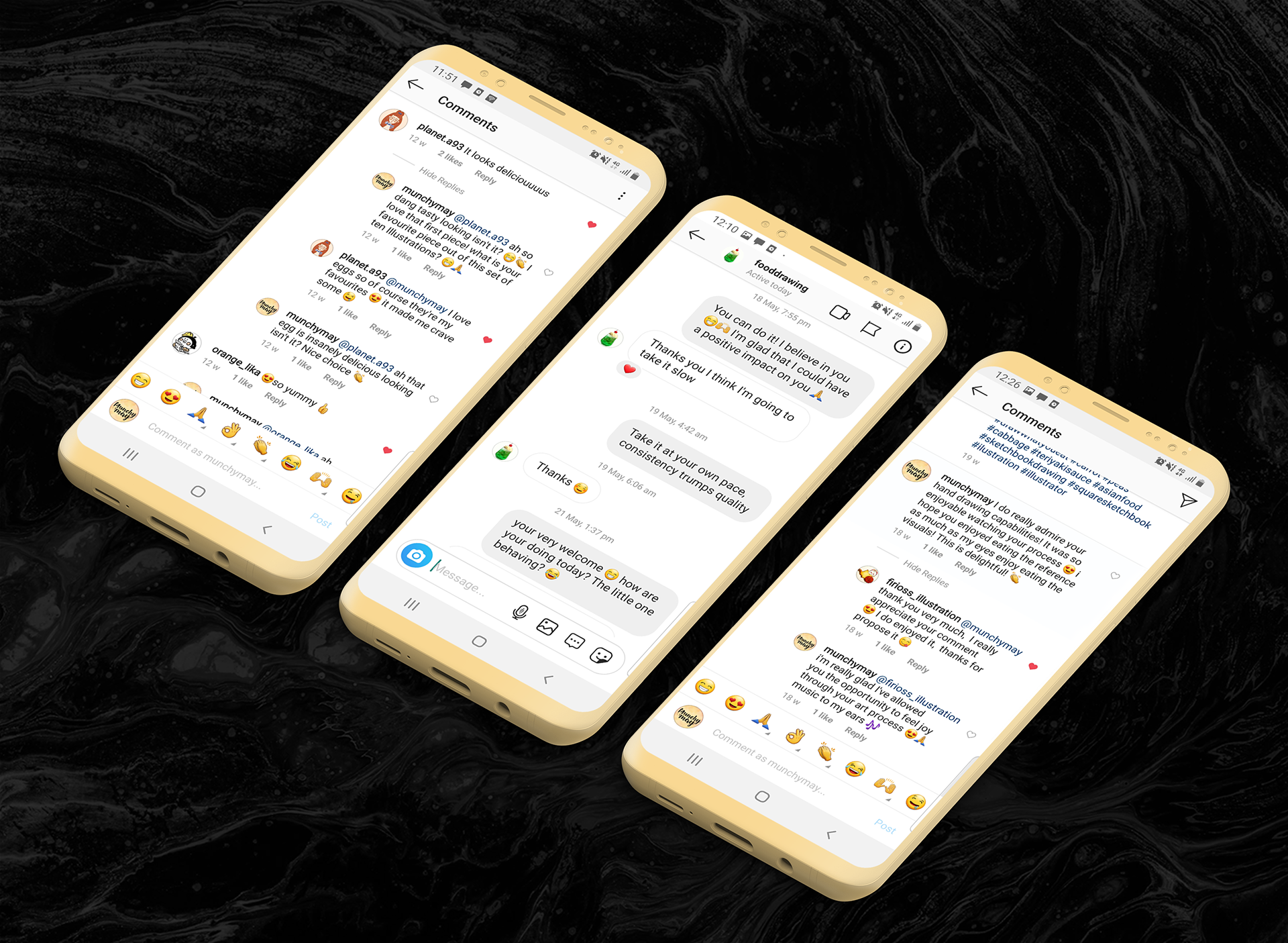 Many people look to online communities to seek aid, I knew this because I was about to build one. I recognised my ability to make a change, MunchyMay was born to promote positive mental-health frameworks and food illustration was the context to connect a disrupted niche.